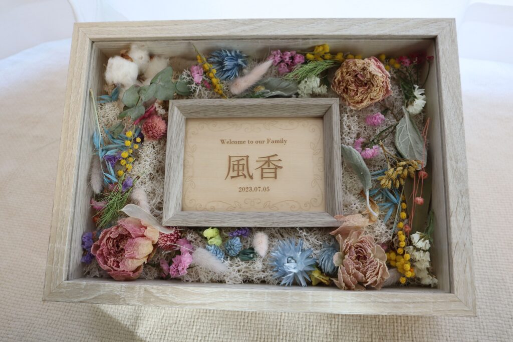 命名書:赤ちゃんの名前を記した書。家族の名や日付なども入れて、将来の思い出として残すことができます。