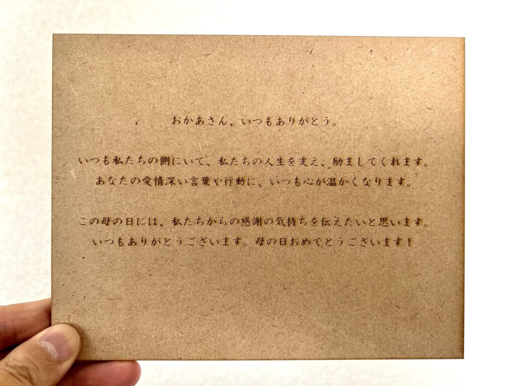 きぬの木堂では、普段は中々言えない感謝の気持ちをレーザー彫刻して、フラワーBOXとしてお渡しできるオリジナルプレゼントをご用意しております。