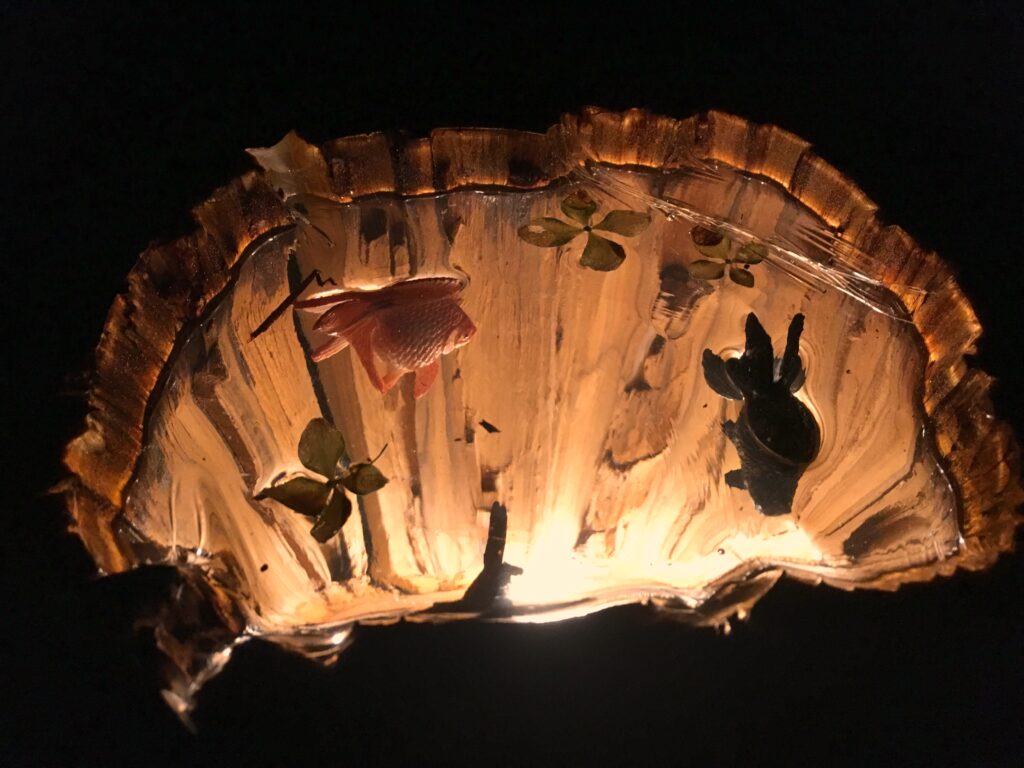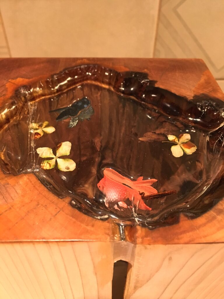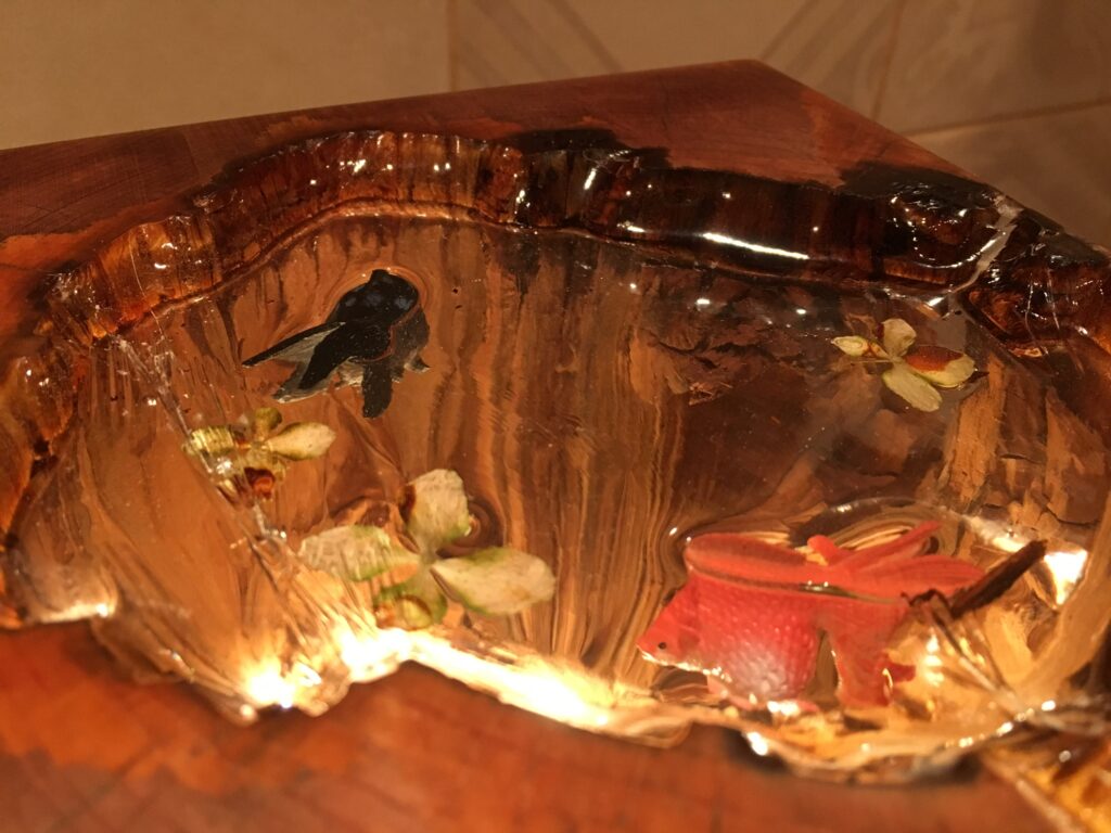金魚が飛び出してしまわないように、レジンで空洞上部に1センチ程度の膜を張っておきます。