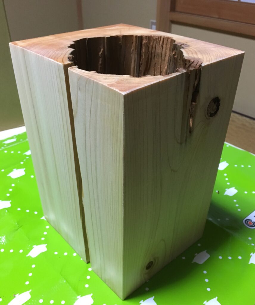 木材も周りをヤスリがけし、空洞部分もブラシでこすり綺麗にします。