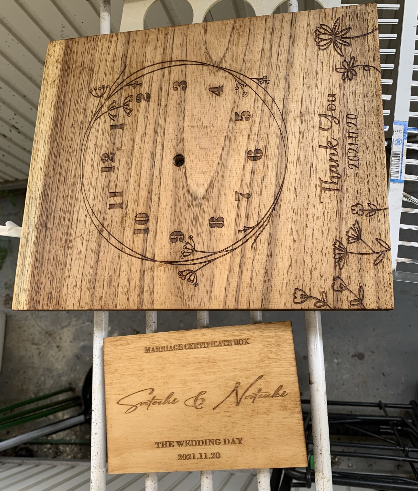 ちなみに3連時計はネムの木、結婚証明書は桜の木です。