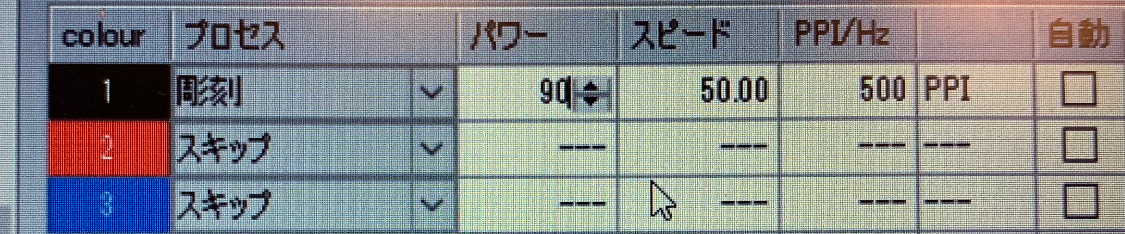 レーザーの設定はこのようにしました!