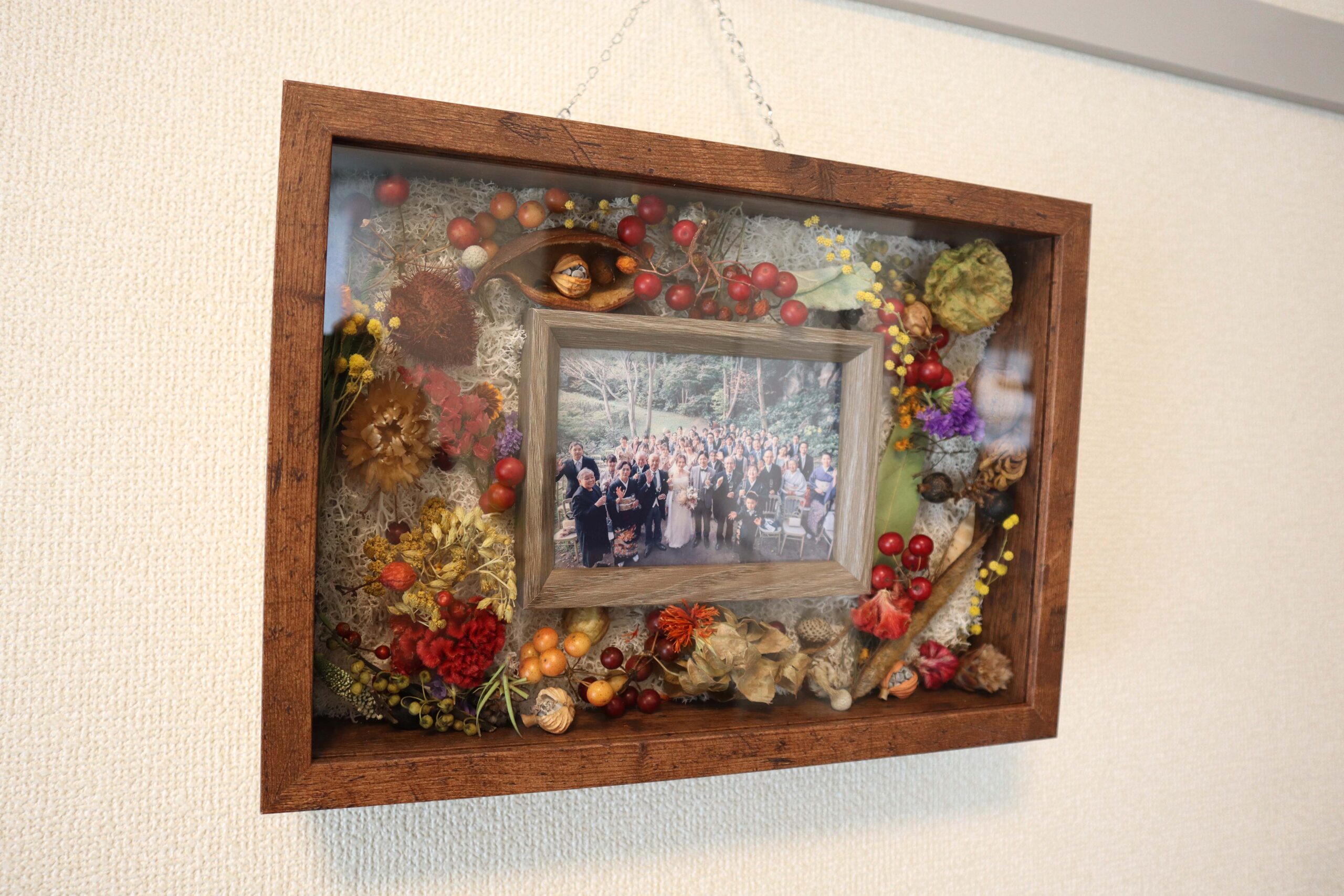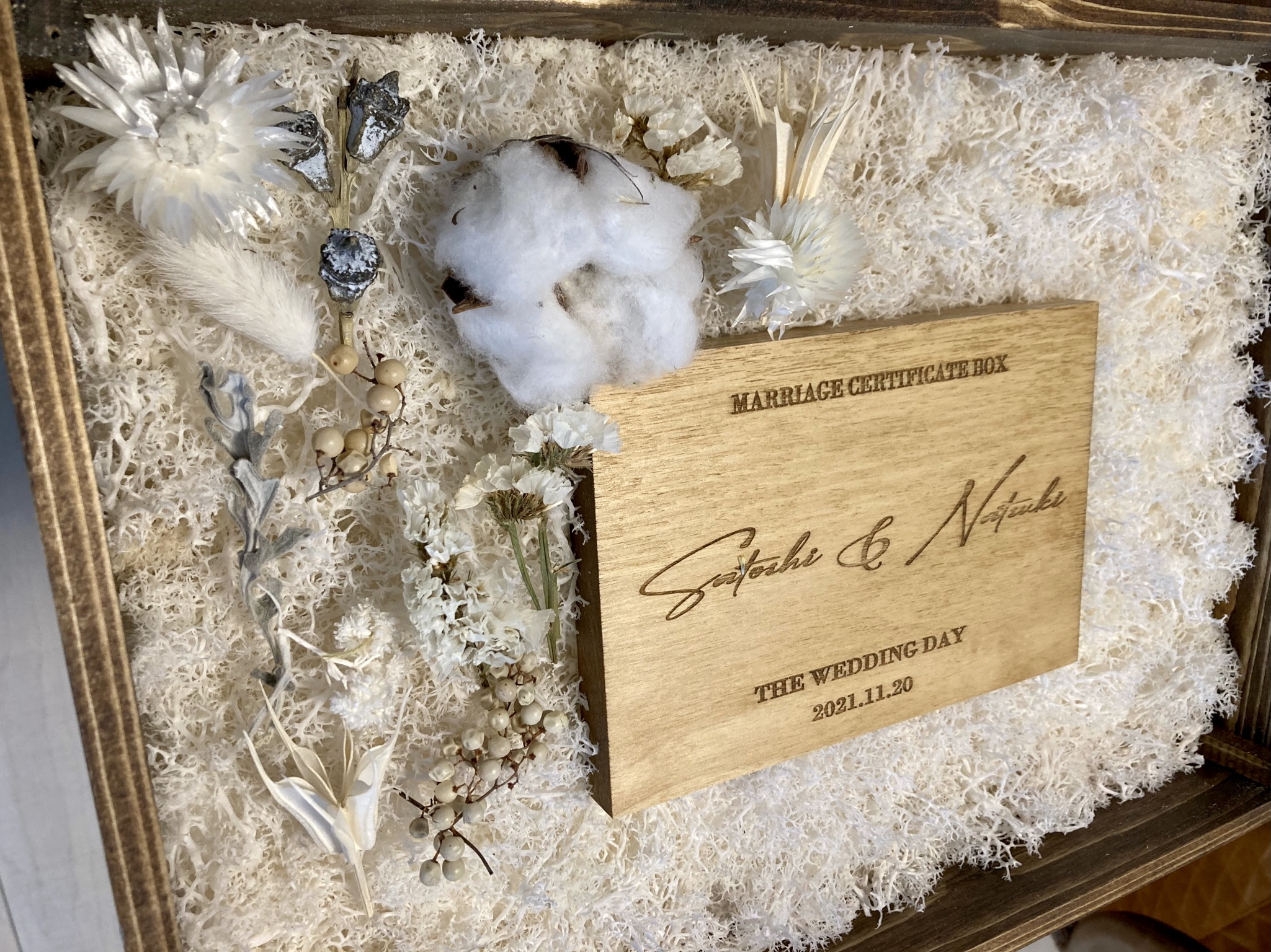手作りドライフラワー結婚証明書BOXの仕上がりは、こんな感じになりました。