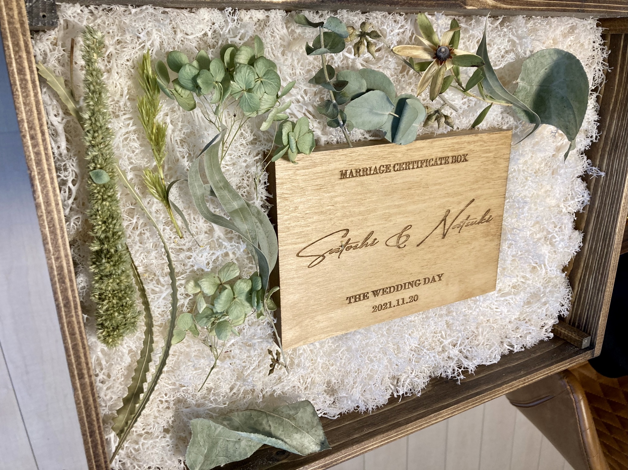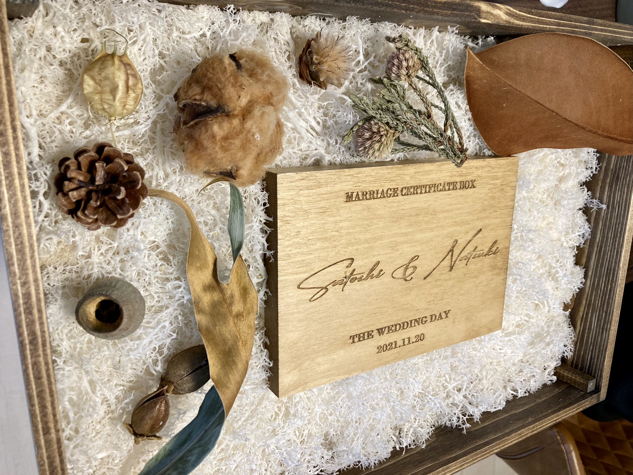 嬉しくて、オリジナル結婚証明書BOXに仮配置してみました。