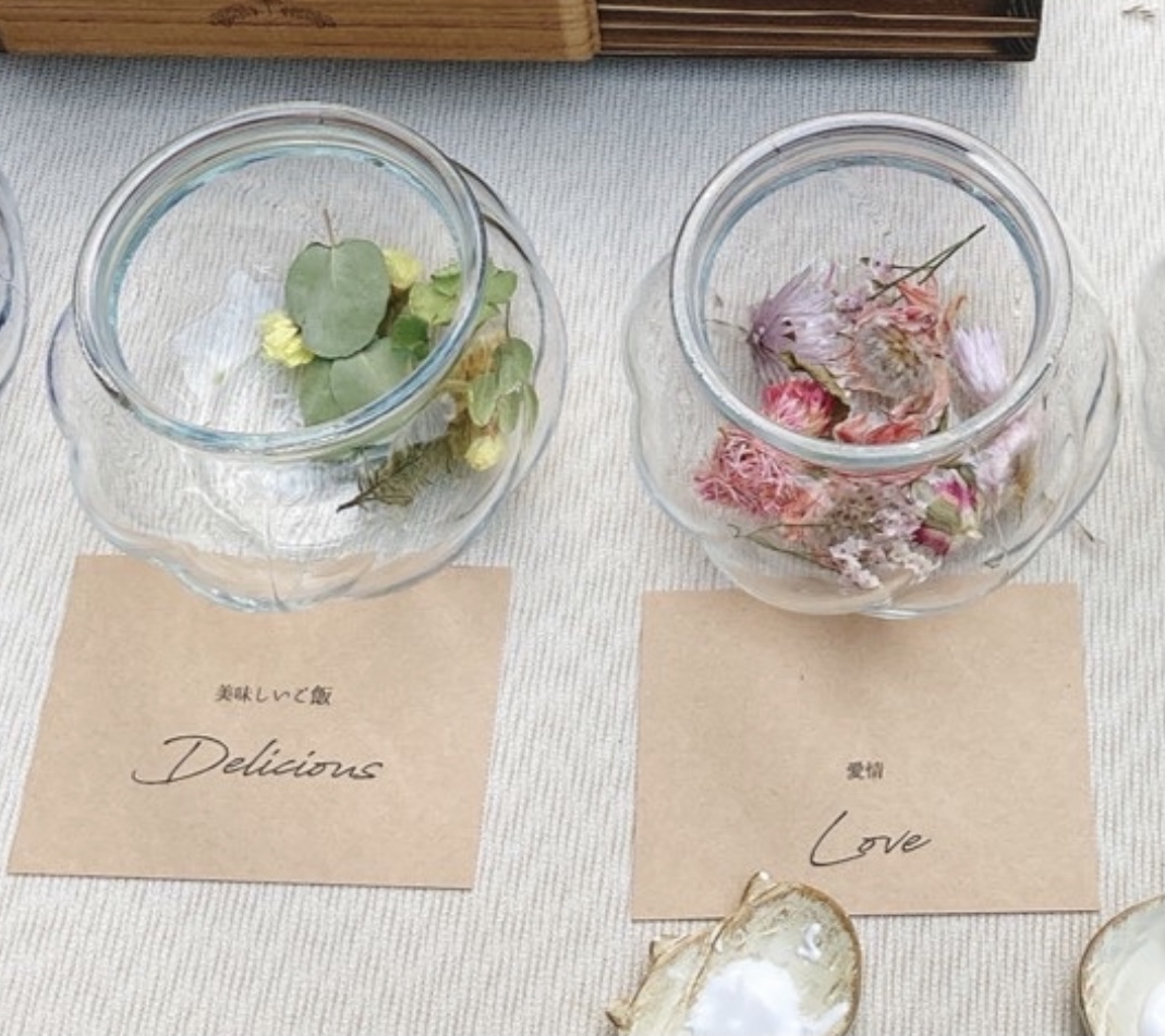 きぬの木堂で適量のドライフラワーを少しずつ頼める仕組みを用意したので、お花選びで迷っている方はご利用ください。ドライフラワー量り売り(ガラス瓶付き)