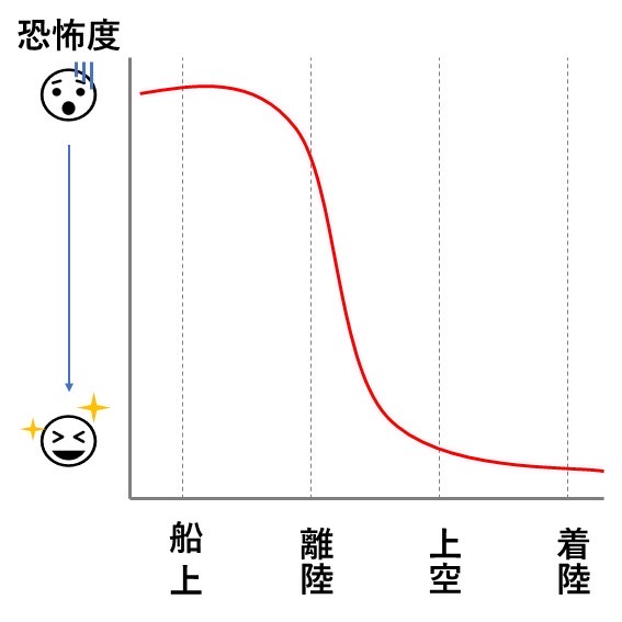 船上・離陸・上空・着陸までの恐怖度グラフです。