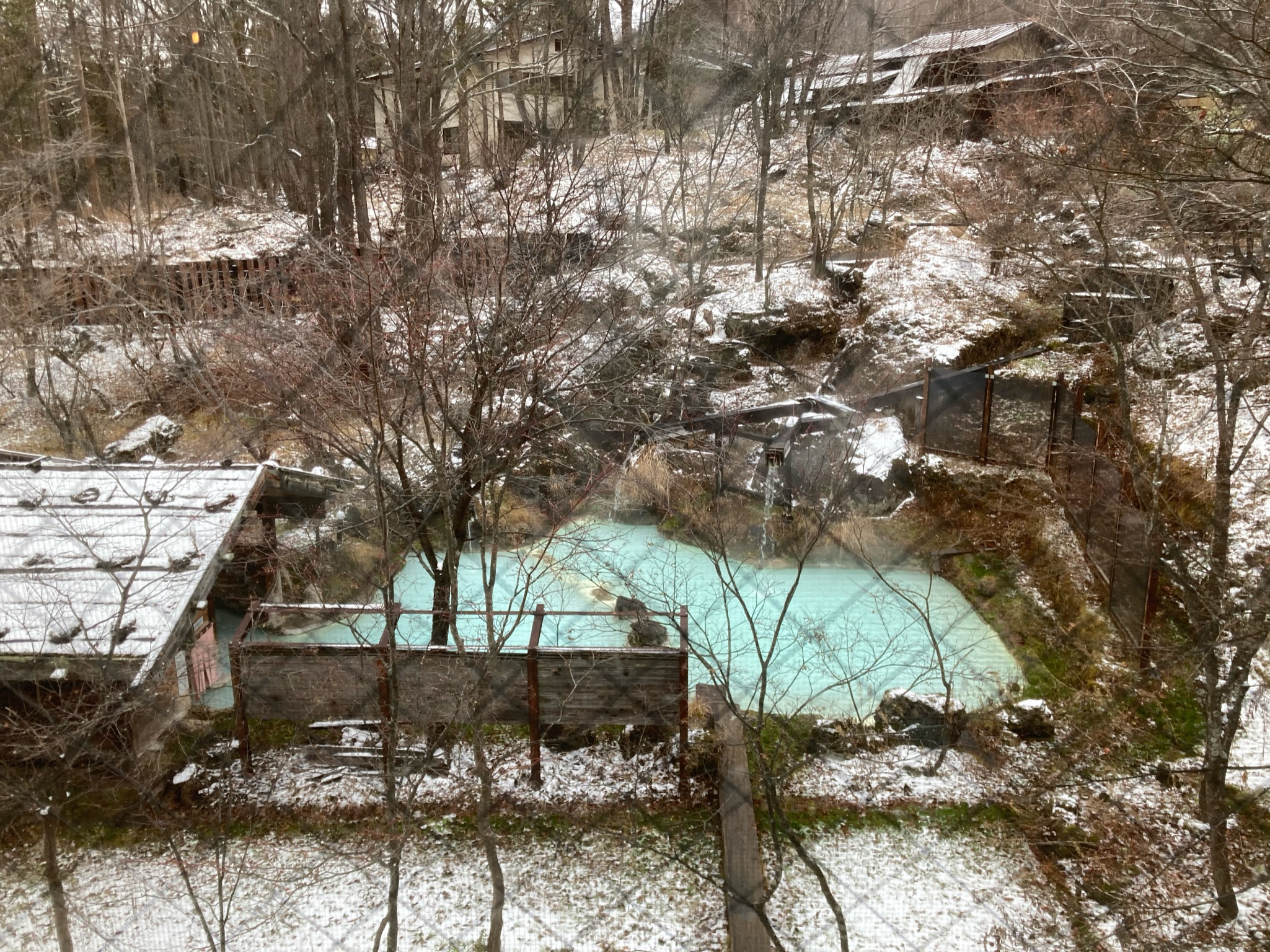 特に気になったのが、冬の雪景色と白濁の湯の共演。それと秋の色とりどりの紅葉とコバルトブルーのコントラスト。